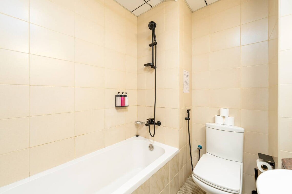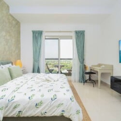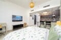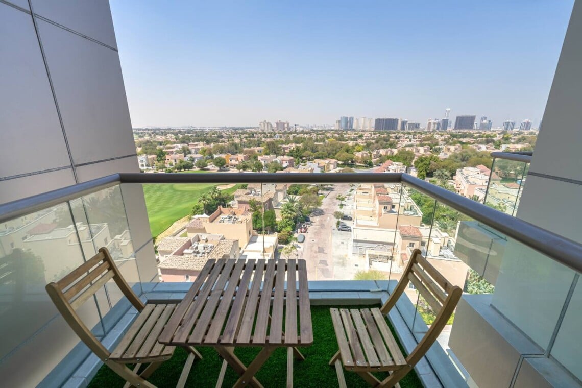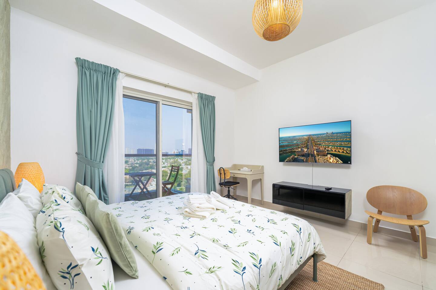 Are you planning a visit to Dubai for leisure or business? Enjoy an exquisite living experience in this luxurious holiday home in Dubai Sports City with a wide range of amenities for your ultimate comfort. 𝐊𝐄𝐘 𝐅𝐄𝐀𝐓𝐔𝐑𝐄𝐒: ✔ 1 King-sized Bed ✔ 1 full bathroom consisting of soaking bathtub, shower, toilet, sink, and mirror ✔ Beautiful open-plan kitchen area with ample dining space. ✔ Essential cooking supplies ✔ Cozy balcony with table and chairs ✔ Golf Course View ✔ High-speed Wi-Fi ✔ Dedicated working space ✔ HDTV ✔ 1 parking spot on the premises ✔ We've got your basic toiletries covered- our little gift for you! 𝙑𝙞𝙨𝙞𝙩𝙞𝙣𝙜 𝙛𝙤𝙧 𝙬𝙤𝙧𝙠? We've got you covered! Our apartment features a dedicated work desk with a comfortable chair and blazing-fast 250 Mbps Download and 250 Mbps Upload Wi-Fi to keep you productive and connected. 𝙃𝙚𝙧𝙚 𝙛𝙤𝙧 𝙛𝙪𝙣? Dubai's vibrant attractions are just a quick drive away. Book your stay and immerse yourself in the city's lively entertainment and adventure scene. 𝙋𝙡𝙖𝙣𝙣𝙞𝙣𝙜 𝙖𝙣 𝙚𝙭𝙩𝙚𝙣𝙙𝙚𝙙 𝙨𝙩𝙖𝙮? Experience the comforts of home with the convenience of a hotel. Our fully equipped kitchen lets you cook your favorite meals, while a washer ensures you always have clean clothes. The bed is made with your utmost comfort in mind. You get to relish a great night’s sleep as you prepare for another day of adventure. Plus, enjoy our pool and gym facilities for relaxation and fitness.Details