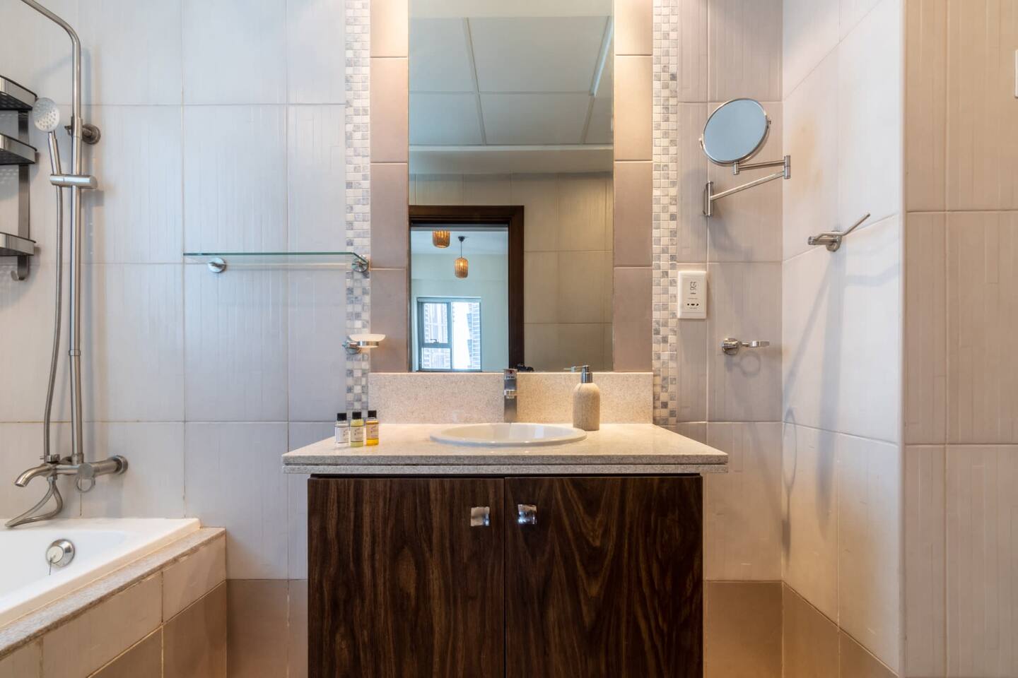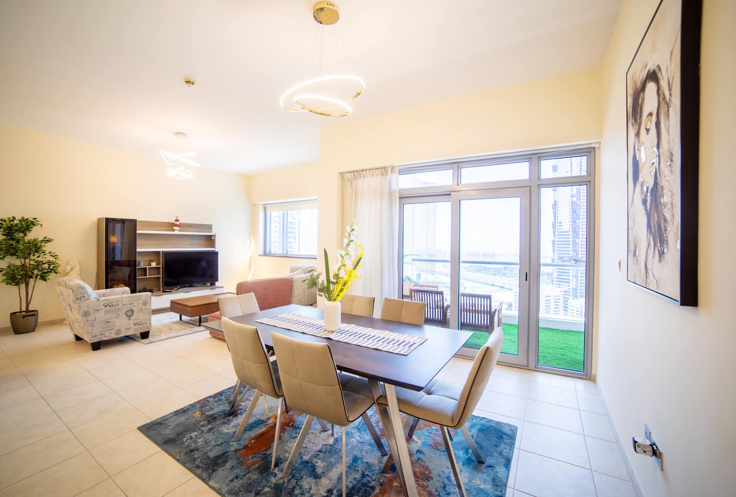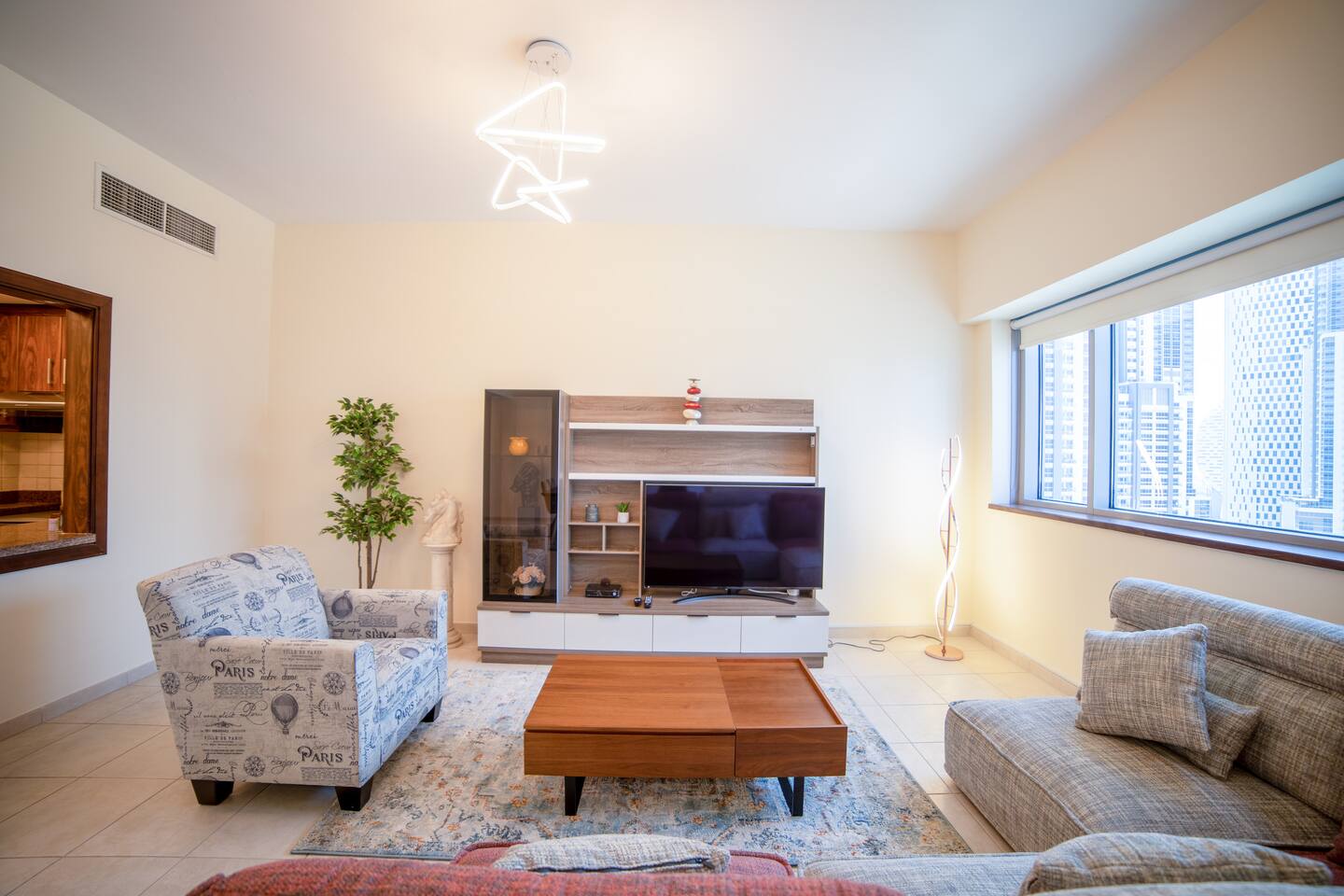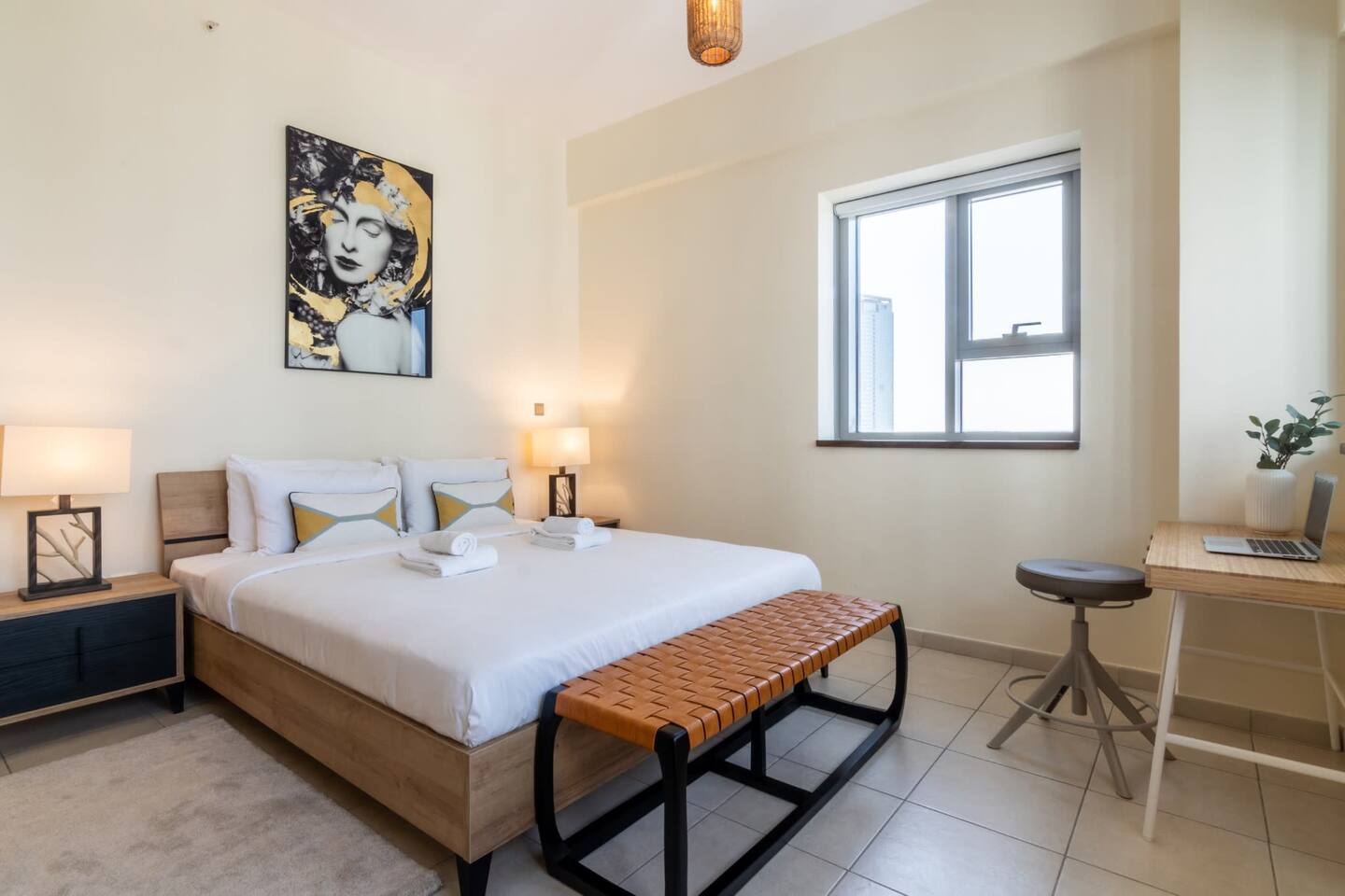 Welcome to your luxurious retreat in Dubai! - 2 Gorgeous bedrooms: 1 King Bed, 1 Queen Bed — sleeps 4 - Stunning city views from the sun-soaked balcony - Fully equipped kitchen and cozy lounge for relaxation - High-speed Wi-Fi and dedicated working space - Access to gym and outdoor pool - 2.5 bathrooms with complimentary toiletries - Nearby attractions include Burj Khalifa and Dubai Opera - Professionally cleaned and strategically disinfected for your comfortNotes